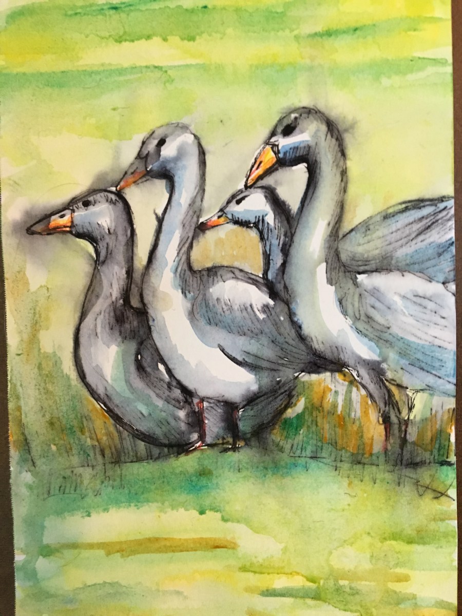 Gaggle of geese 5×7 $50