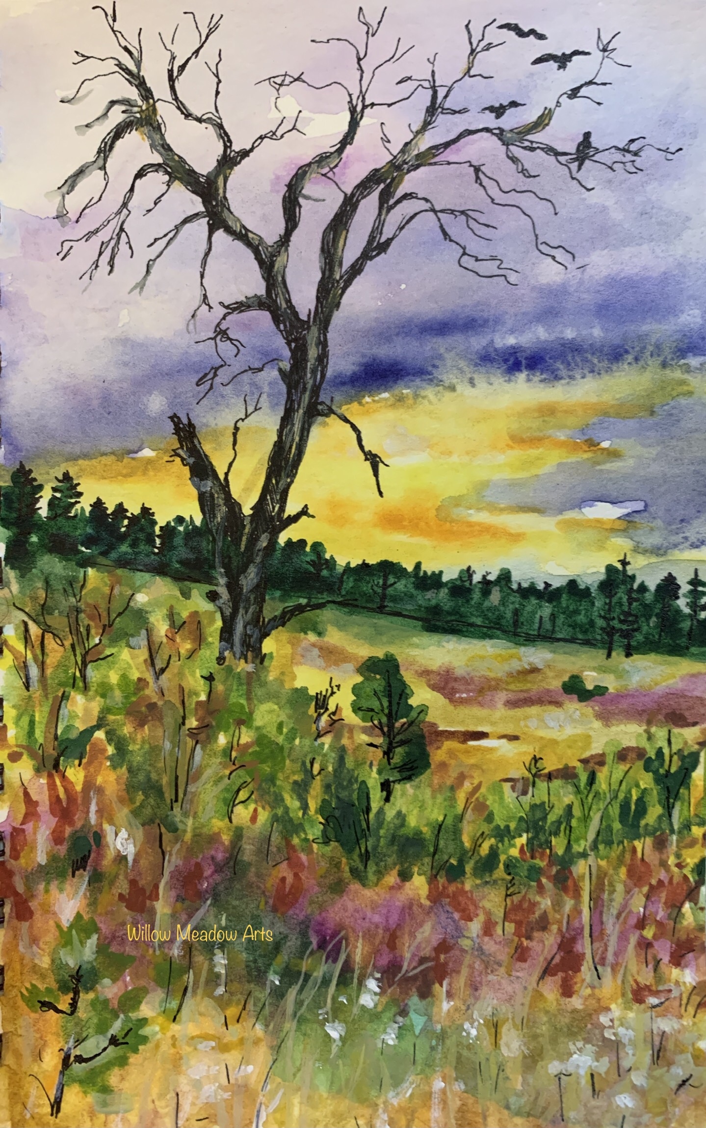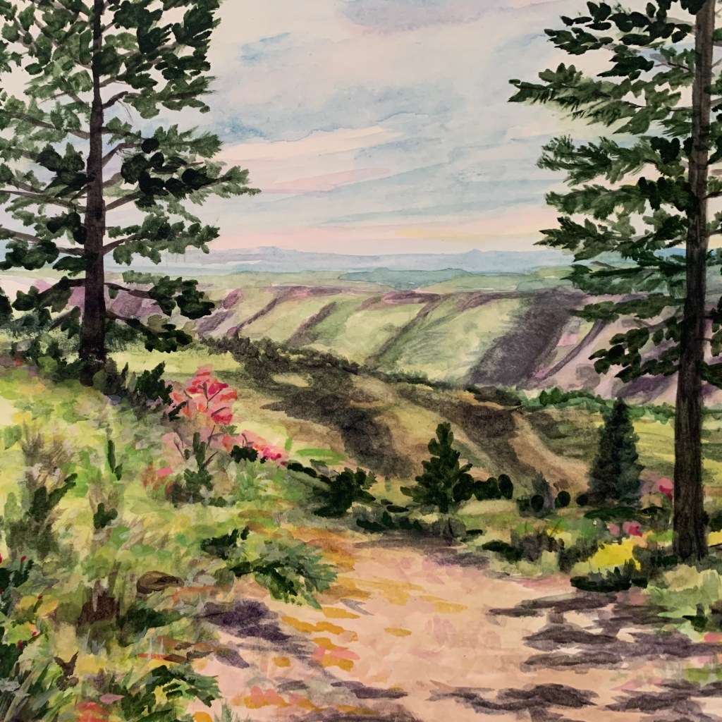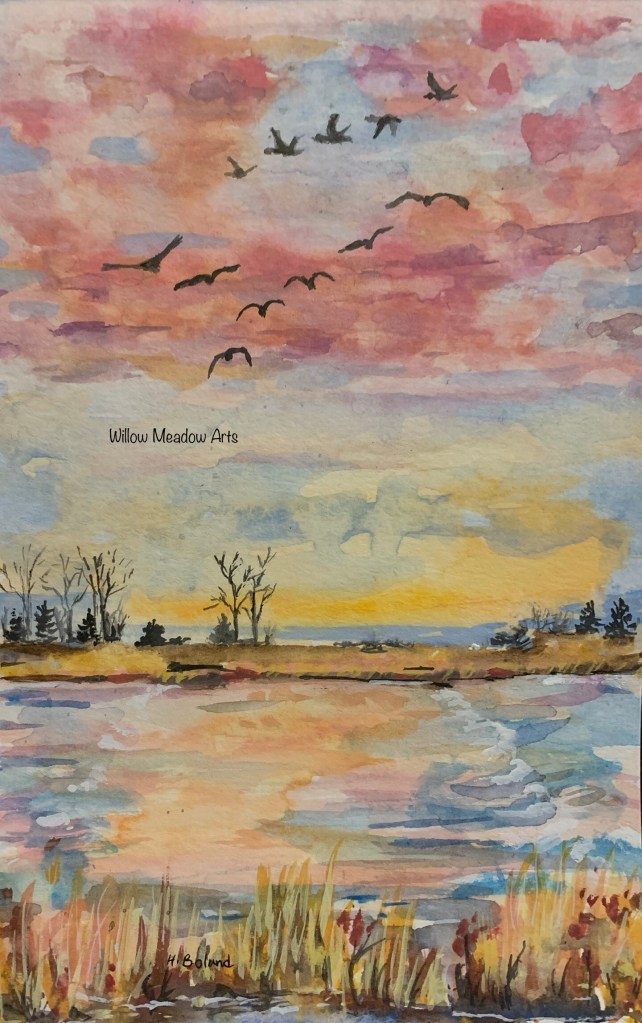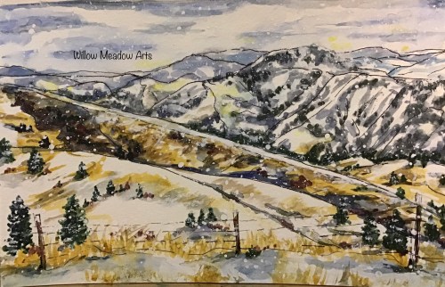 - Sunset in the Foothills. 5×7 framed $65