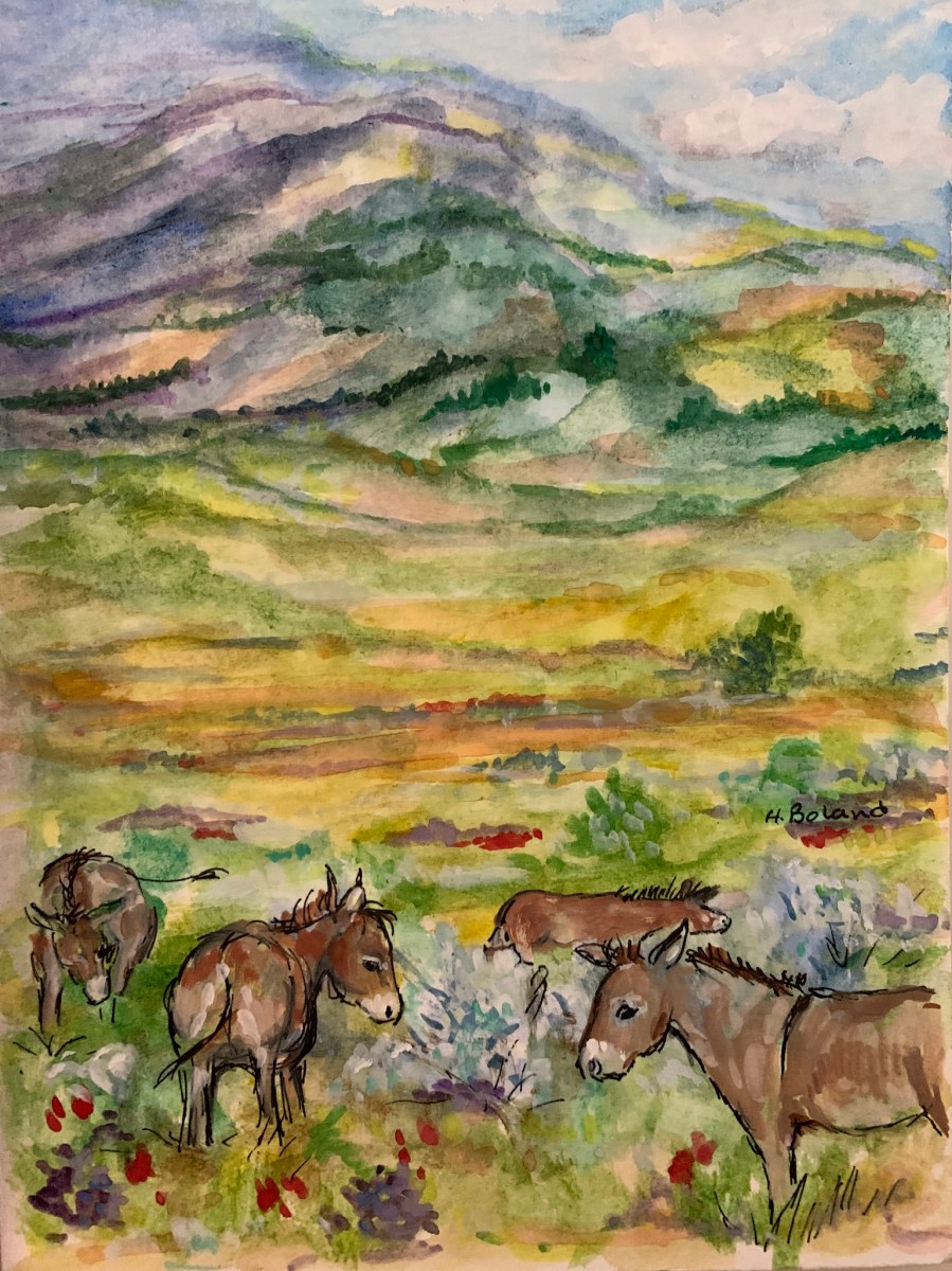 Wild donkeys 5×7 framed $50